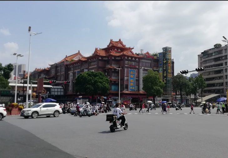 更に南の筷子路(箸の路)のゴミ街を目指します。祖廟の裏のビルが遠方に見えます。金属カバーが外れた100円ライターのようです