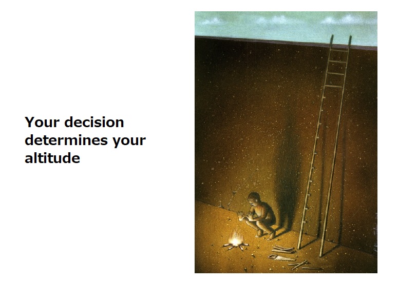 ペンネーム:Protopalです。中央研究院勤務時に事務所の壁に貼られていたイラストでキャッチは「Your decision determines your altitude」というもの。個人的に強烈に印象に残っています。気が付かないうちに自分も多くの局面でこの少年のような愚かな判断をしてきたような気がします。未知のエリアに踏み込むときは勇気がいりますよね。発見を求めて初めての場所に出向く時は、「何もないだろう」ではなく「きっと何かある!」と考えるようにしています。